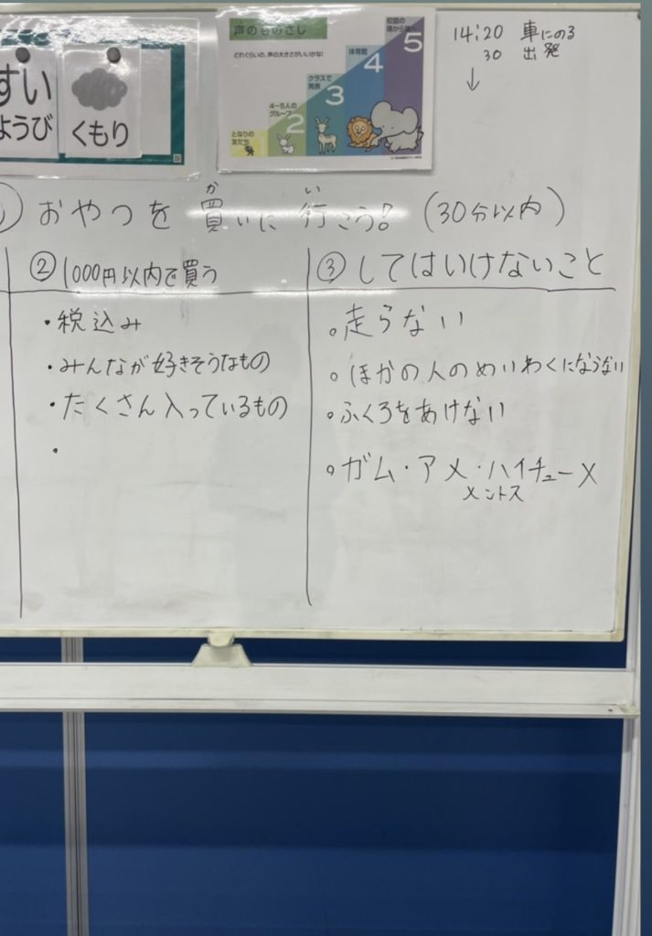 「1つのグループで1000円以内」という課題をクリアするために、指導員と電卓を使い、どのおやつにするか一生懸命選んでいましたよ!