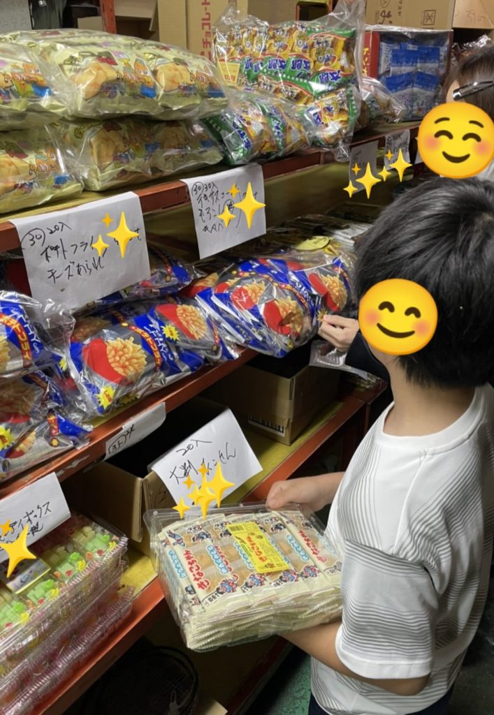その後、車で移動をしてお店に到着!いつも自分達が食べているおやつを見て、嬉しそうに店内を歩いていました。