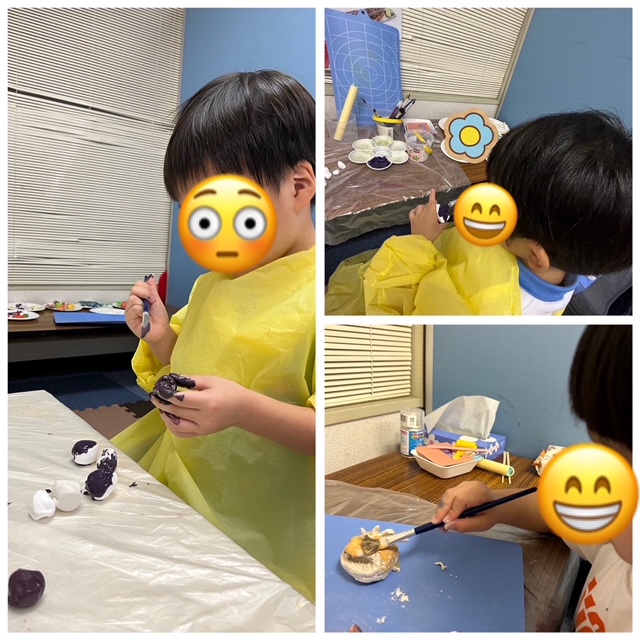 粘土の白い色が見えなくなるように、みんな器用に粘土を手に持って、クルクルと回転させながら塗ることができていました。
