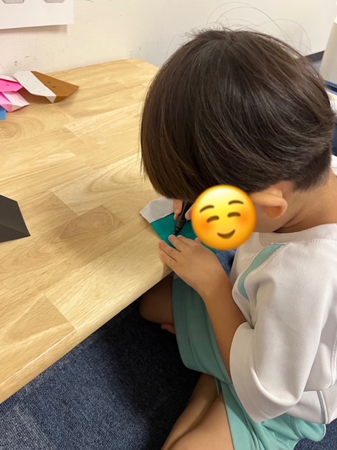 折り紙の端と端がぴったり合うよう、みんな集中!一生懸命に取り組むことができていましたよ。
